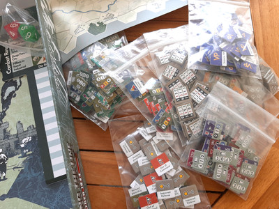 Los counters se destroquelan maravillosamente porque vienen en una plancha ya lista para no tener que clipearlos. Es decir ahorras y ganas tiempo, tiempo perfecto para empezar a jugar casi a los 30 minutos de abrir la caja. Y esto se debe a que las reglas no son para nada complicadas y jugar en solitario en este caso es sencillo por sus mecánicas de activaciones de divisiones. Las puedes obtener en español en la bgg.