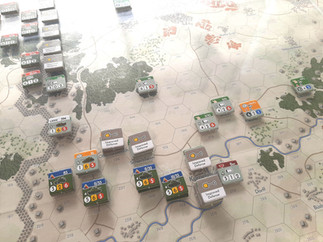 Regresando a los turnos estos se dividen en una fase administrativa conjunta en la que colocas los counters de divisiones en sus valores máximos de activación, las unidades desorganizadas las mejoras, fase de refuerzos y calculo de interdicción (ayuda al americano en tirada dados de jugador que activa). La siguiente parte del turno es la fase de operaciones en las que activas a las divisiones.