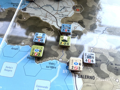 Un sistema que me gusta en algunos juegos como en Holland, Ardenas e incluso en Stalingrado, pero que en Normandía (juego que amé en su tiempo) y en este de Salerno por ejemplo se me hacen bola…. Es probable que gane en el futuro con la ampliación del juego con los otros dos teatros pendientes de sacar, pero a día de hoy no es un juego que yo sacaría a mesa.