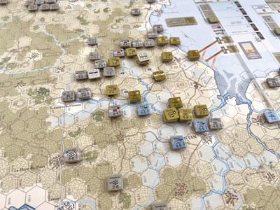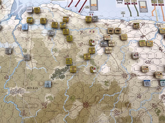 OOM. el jugador alemán tiene una cuadrícula con cajas y flechas por las que se irán moviendo los refuerzos que llegan desde el sur. , acabando en las zonas de entrada, que podrán ser usadas para moverse de una otra. Mecanizadas pueden mover hasta 2 cajas.